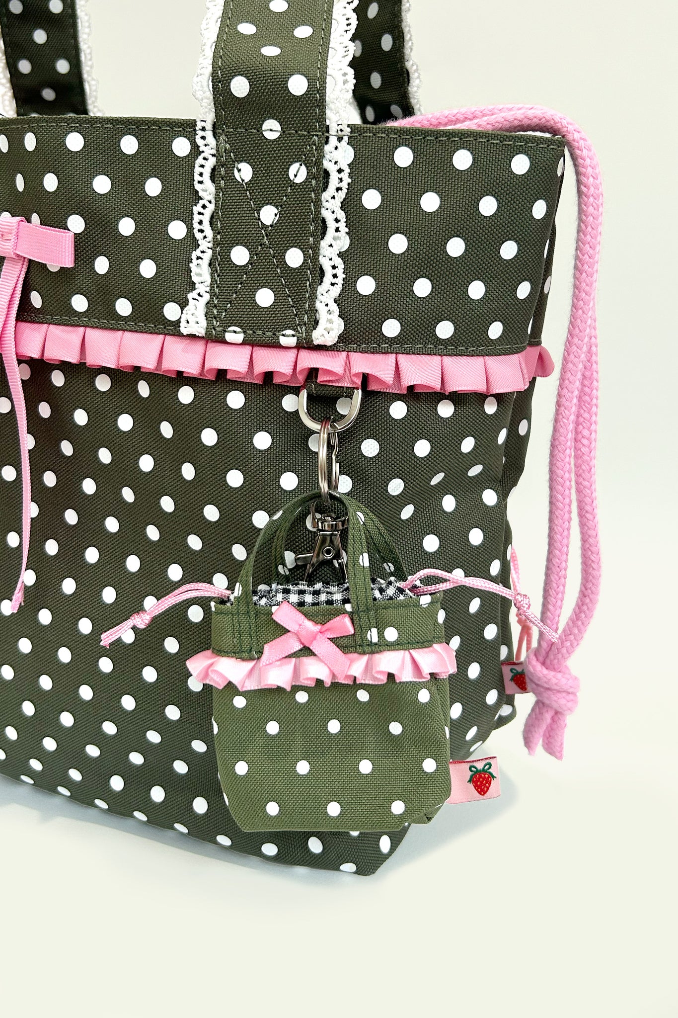 Your favorite Ichigo Bag now has a miniature friend! This cute and tiny keychain version of our beloved Ichigo Bag fits an Airpods case or a little jar of lip balm. Comes with a removable keyring and trigger snap.