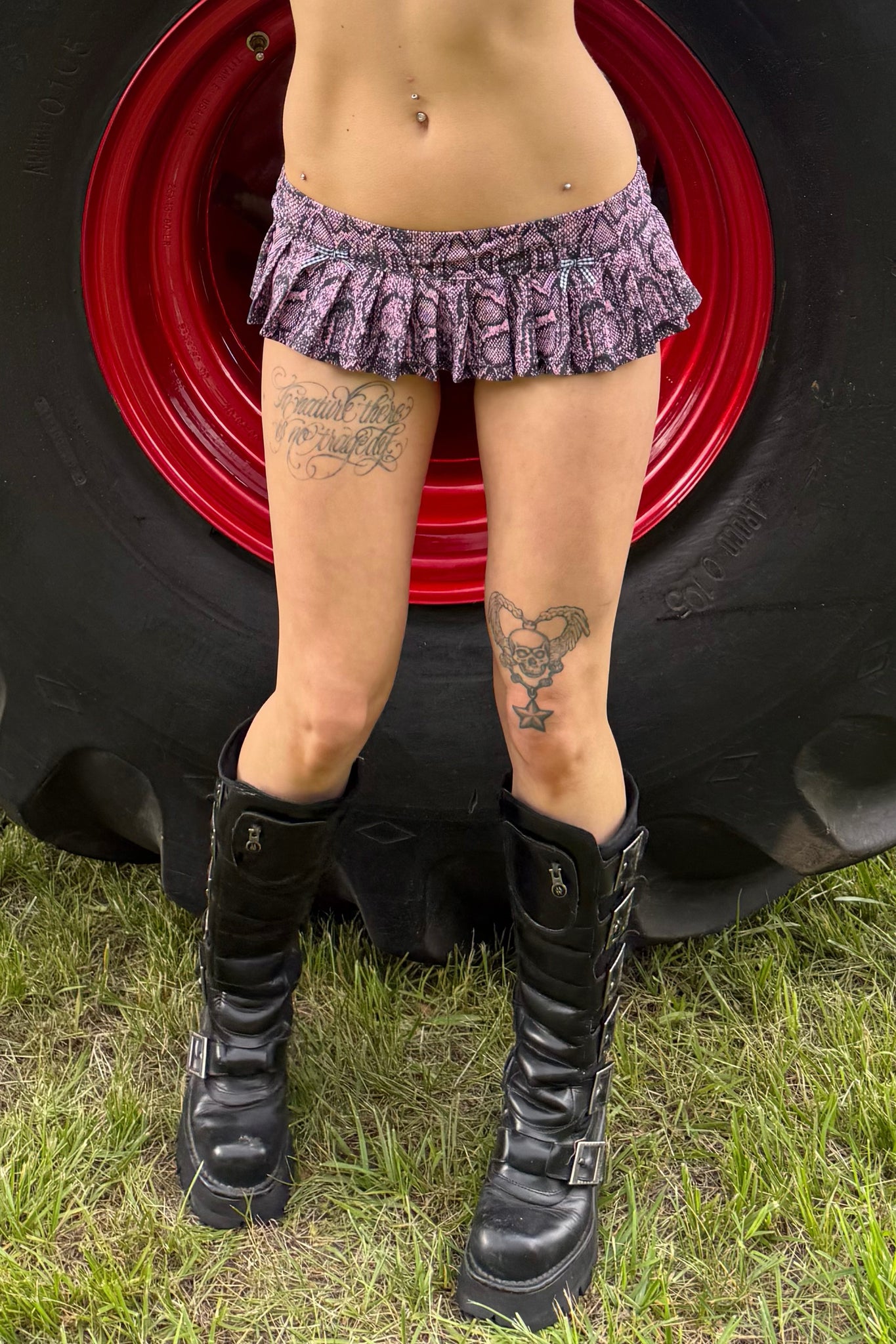Cutest low rise pleated micro skirt with attached bikini bottom. Gingham bows at front waist. Mix and match it with any of our bikini tops. Made from recycled materials.
